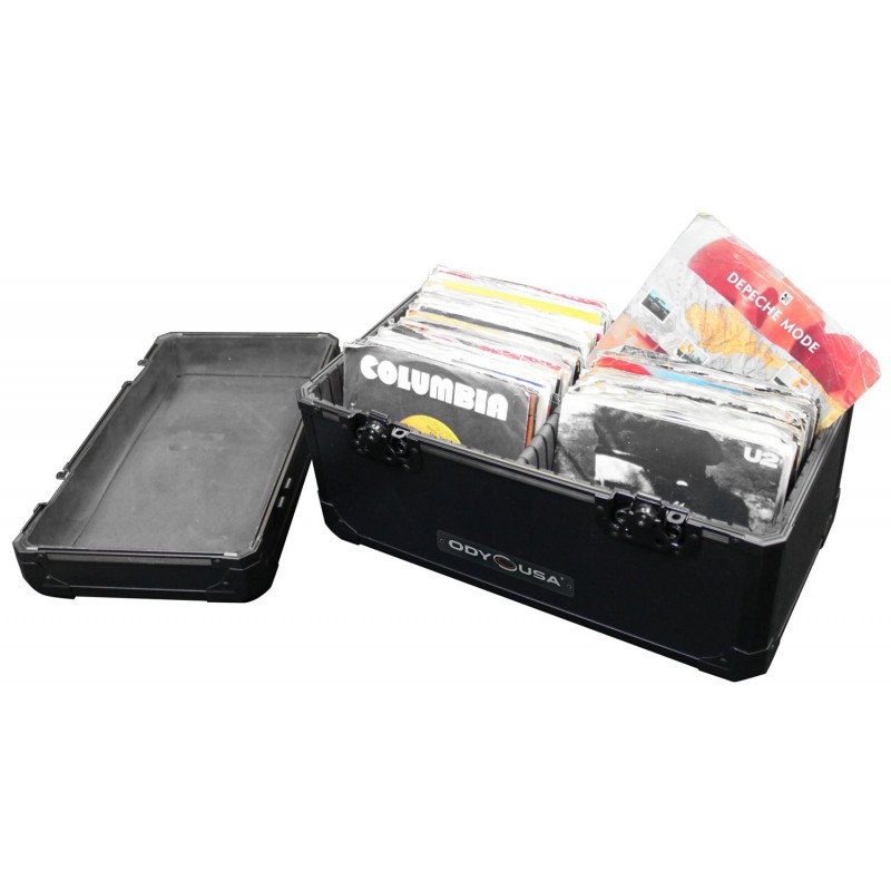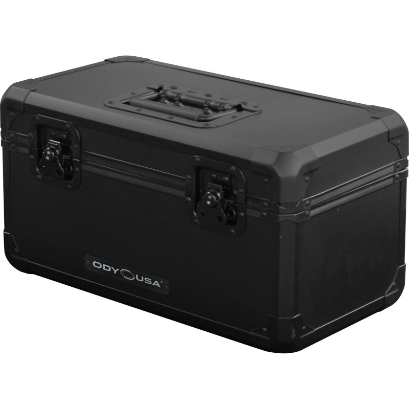 Odyssey's Black Krom™ cases are made to the same standards as our original Krom™ series, but with a twist. The hardware including the aluminum trim are coated a sleek "Black". The steel corners are uniquely hexagon-shaped and each also features rubber feet for stacking multiple record cases, a must for large 7" record collections of vinyl purists and DJs who are true to the art of turntablism. The K45120BL has a fully foam-lined interior, heavy-duty recessed handle, and front latches with padlock loops. Black Krom™ cases, slick, stealthy, and beyond cool!