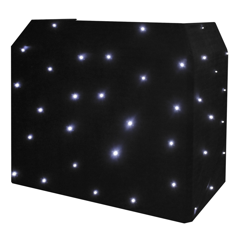 Upgrade your Equinox DJ Booth with this black starcloth, featuring 72 white LEDs and an advanced DMX controller. Additionally you can create a white starcloth effect when combining the white lycra supplied with the EQLED12 and this black starcloth.
