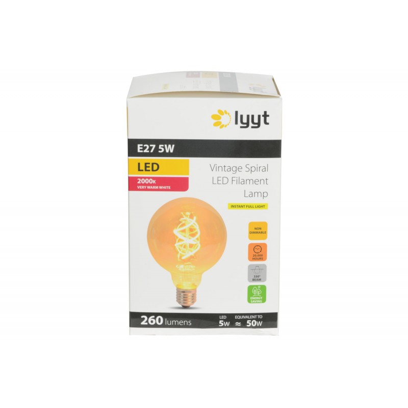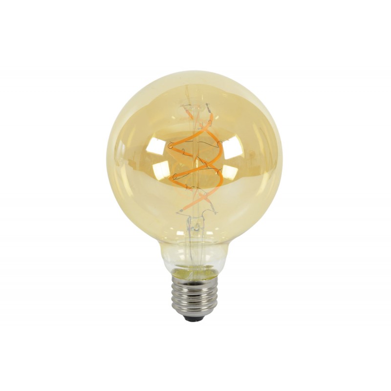 LED replacement G95 decor lamp with spiral filament. The warm white colour temperature combined with amber coated glass envelope invokes a retro ambiance. Energy efficient drivers deliver stable power and provide useful illumination for decorative yet functional lighting schemes.