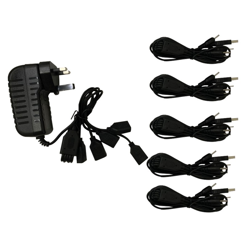 This 20 way charger set for the W Audio SDPRO silent disco headphones utilises an efficient SMPSU together with multiway charge cables, allowing the rental company to charge multiple headphones ready for use.