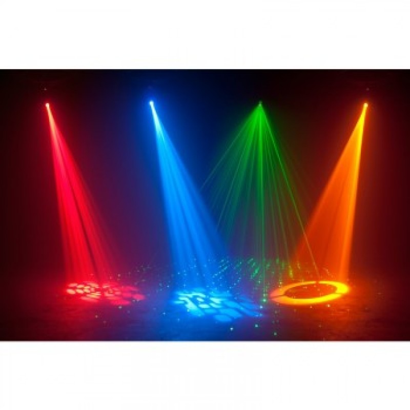 Featuring 7 colors plus white, 7 gobos plus spot and separate color & gobo wheels. The Inno Pocket Spot LZR will give pure lighting excitement with its fast moving beams and color changes. It has a pan and tilt inversion mode that makes one head do the opposite of another when linked together.