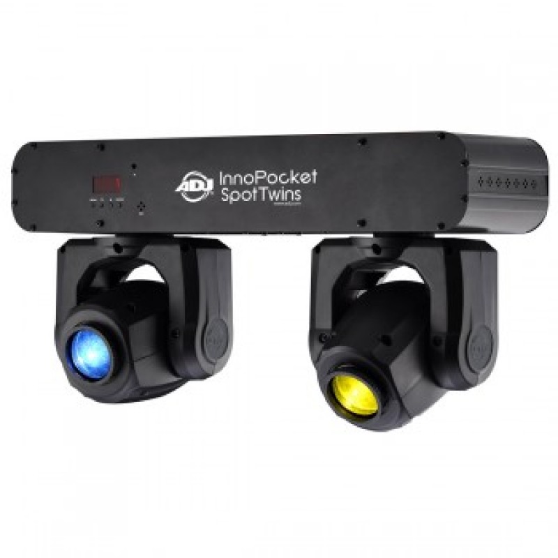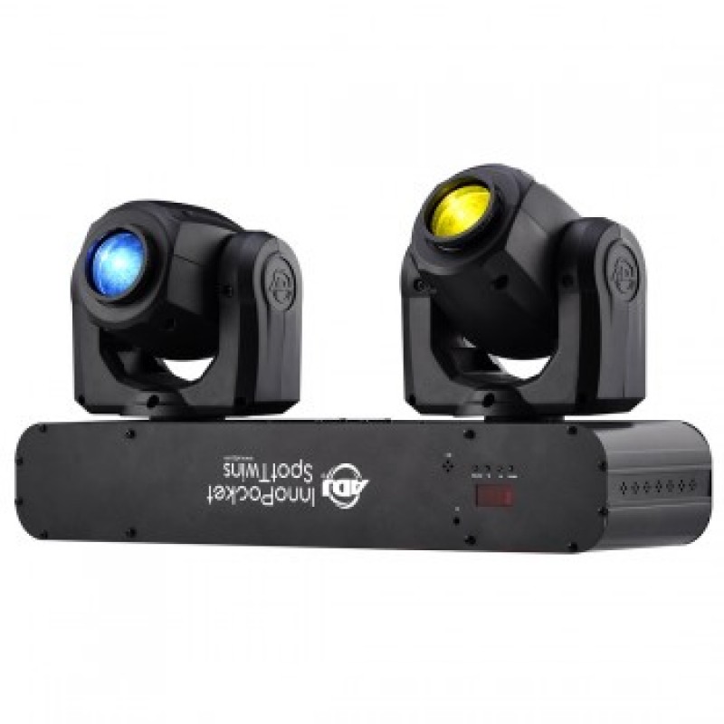 Featuring 7 colors plus white, 7 gobo plus spot and separate color wheels, the Inno Pocket Spot Twins will give pure lighting excitement with its fast moving beams and color changes. It has a pan and tilt inversion mode that makes one head do the opposite of another when linked together. The Inno Pocket Spot Twins may be hung from truss, mounted on a pole or set on the ground.