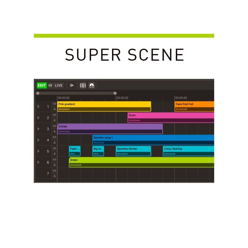 - Super Scene: Combine your different scenes on the timelines of a Super Scene and easily create complex and perfectly timed scenes with perfect precision. Change one of the source scenes and your Super Scene will be automatically updated.