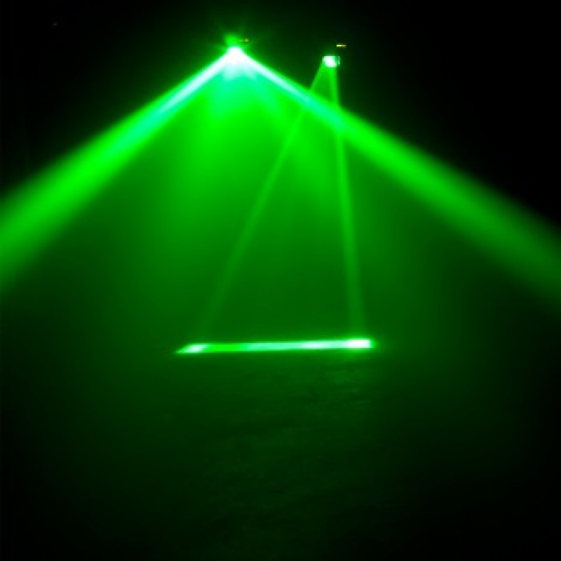 – Produces sharp rays of light that simulate a laser effect and beam effect.