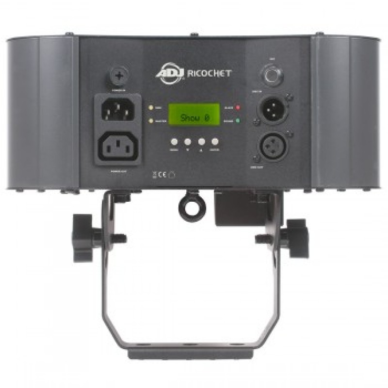 There are 29 built-in patterns, 9 colors and 6 show modes that allow users a lot of creativity to produce stimulating lightshows. The Ricochet has a 3 operational modes (sound active, show mode or DMX), 2 DMX channel modes (12 & 15 channels), a 4-button DMX control menu and features a pattern zoom and rotation effect.