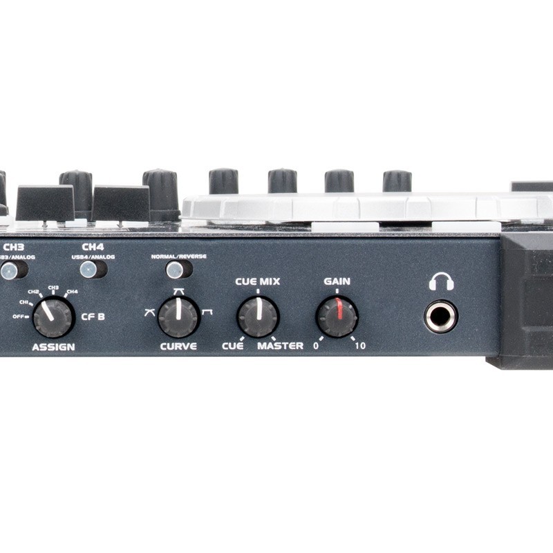 - Analog channel audio latency < 1msec- Selectable USB modes: 4 in 4 out mode for running software effects on phono/line analog channels or 2 in 8 out mode for running 4 software channels and master recording