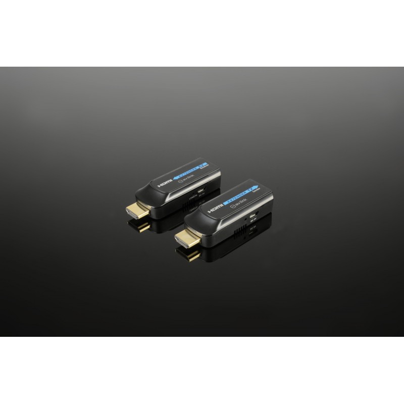 A compact and convenient kit to send HDMI signals over distances of up to 50m via network cable. With support for video resolutions of up to 1080p at 60Hz, this kit provides an economical and space-saving alternative to standard HDMI cable; ideal for portability as well as installations. The kit contains USB-powered dongle-style transmitter and receiver units, to be joined with cat6/6a/7 STP/FTP cable. Depending on signal strength and cable length, the receiver may operate solely from power in the transmitted signal.