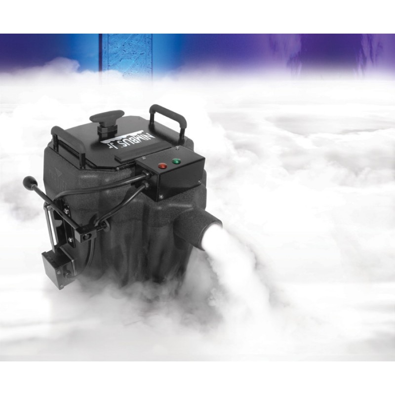 Perfect for smaller venues and mobile entertainers, Nimbus™ Jr. is a compact version of the original Nimbus™ dry ice machine. Simply fill it with just over two gallons of water, add up to 5 lb (2.3 kg) of dry ice, and plug it into any standard wall outlet. Nimbus™ Jr. is ready to produce the “dancing on a cloud” effect in less than 20 minutes with a reheat time of 10 minutes between uses.