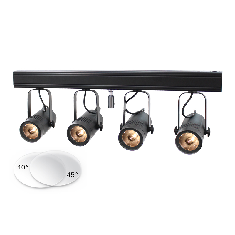 The Event Spot Bar features 4 individually controllable pinspots and is ideal for night club, bar or marquee use. Setup is easy as the bar comes with a host of built-in features and control options including DMX, master/slave and stand alone. Each pinspot on the bar is fully adjustable ensuring you can always hit the spot. Supplied with omega clamps the bar is installed quickly and M10 threaded holes further add to the versatility of this unit. Also supplied is a 28mm spigot for stand use. The all steel aluminium construction guarantees years of use out on the road.