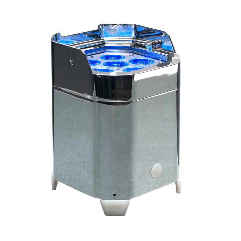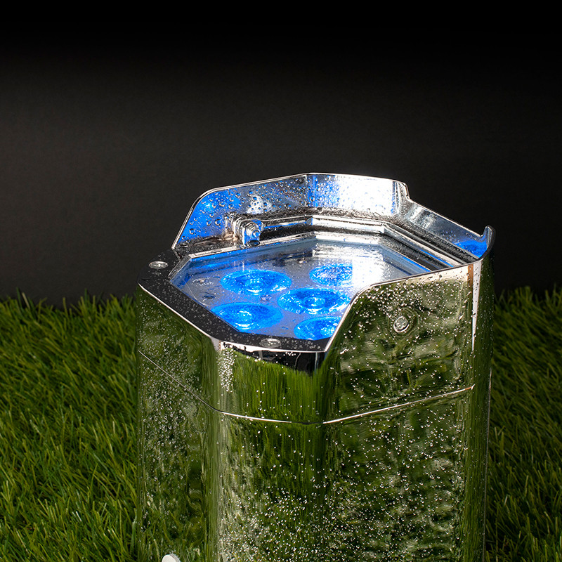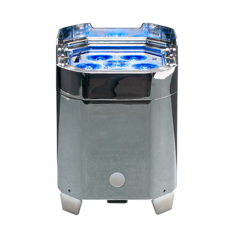From the Element Par Series, the Element HEXIP Pearl is an IP54 outdoor rated battery powered LED Par in a chrome metal housing with ADJ’s WiFLY EXR wireless DMX for indoor or outdoor use. It’s powered by six 4W RGBAW+UV (6-IN-1) LEDs. The Element Par Series are lightweight and easy to operate with a carry handle and kickstand for uplighting, staging, events, productions and any mobile application. No cables or wires needed!