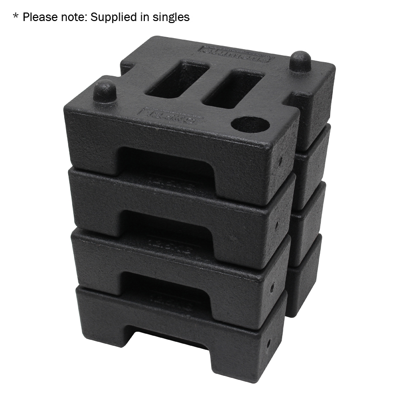 The eLumen8 stage weight features a handle for easy manoeuvrability, and interlocking points for the safe stacking of multiple units.