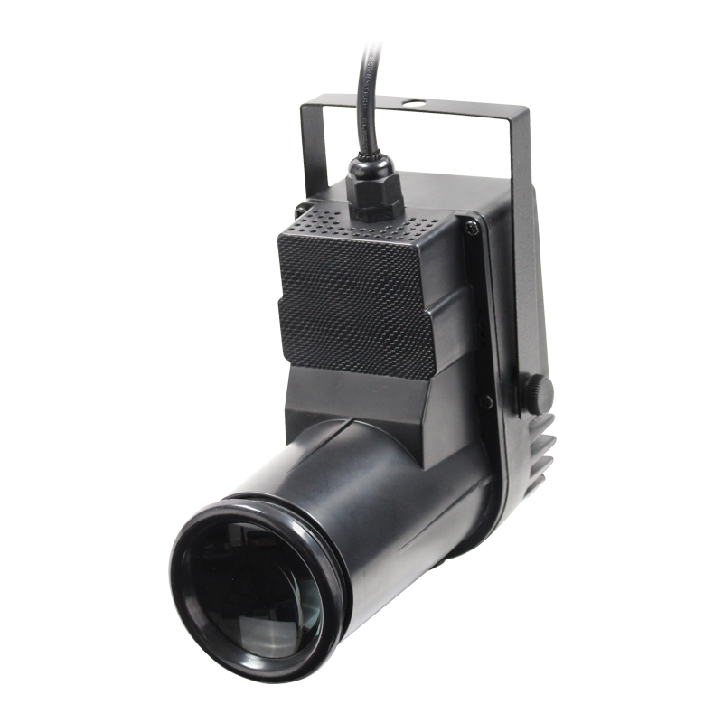 This 12W quad-colour pinspot features a 4° beam angle and multiple modes, perfect for table spotting..
