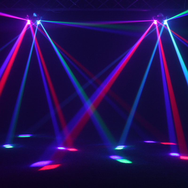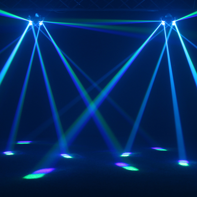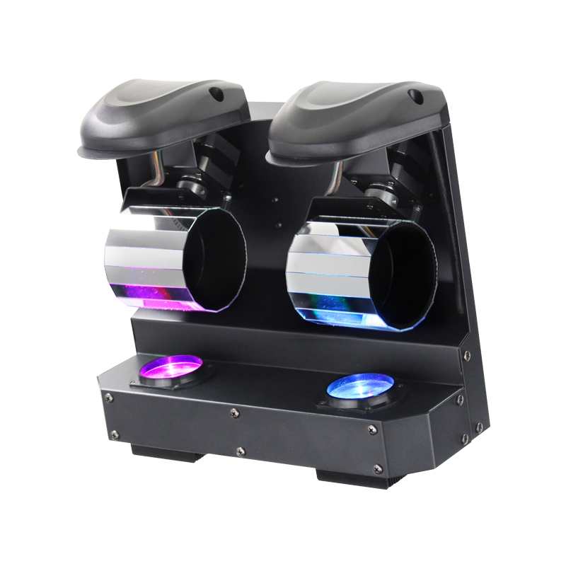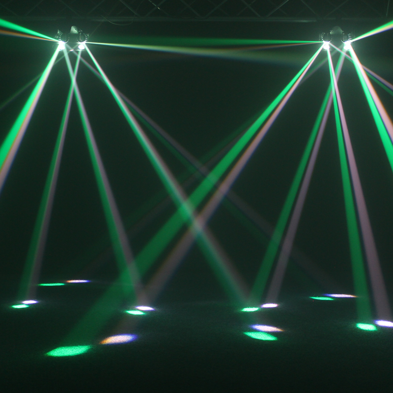 This two-in-one effect combines two contra-rotating barrels and two quad-colour LEDs which generates an array of sharp beam effects that fill most rooms. Red, green, blue and white LEDs bounce off the barrels that rotate back and forth to generate multiple beams that reflect at multi-angles covering rooms and dance floors with ease. Users have a choice between 4 operational modes – auto, sound active, DMX and master/slave plus built-in programs which can be selected via the unit’s 4 push button menu with LED display.