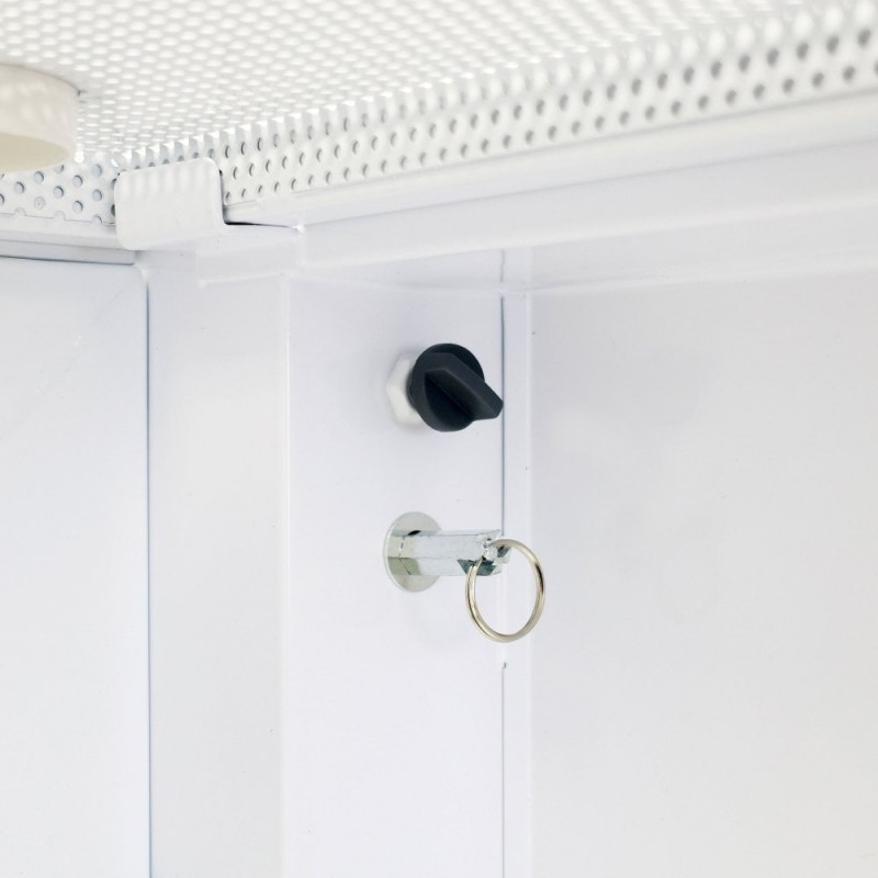 Includes: 3-sided folding booth, concealment panel, vented shelf, 2 top shelves.