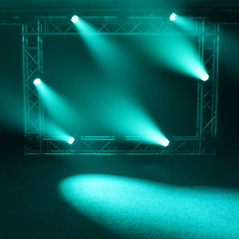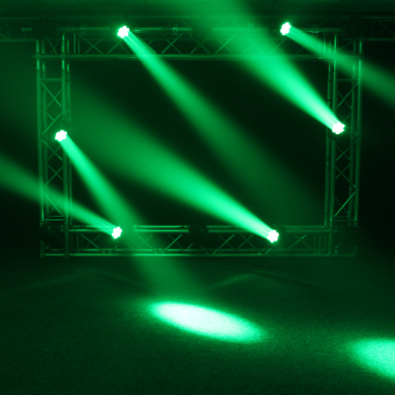- 7 x 12W quad-colour LEDs (RGBW)- Adjustable beam angle: 6° - 45°- 7,541 Lux @ 2m (full on)