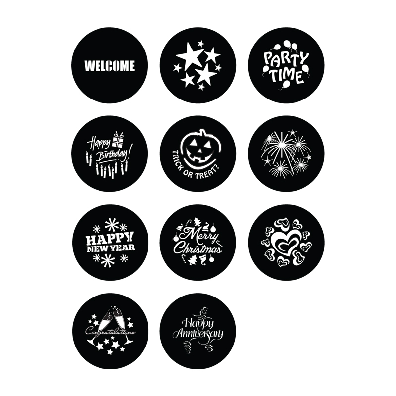 - Print your own gobos, for temporary use, using standard transparency film up to 1mm