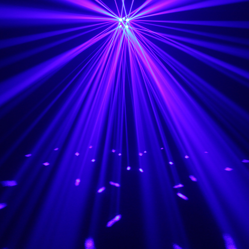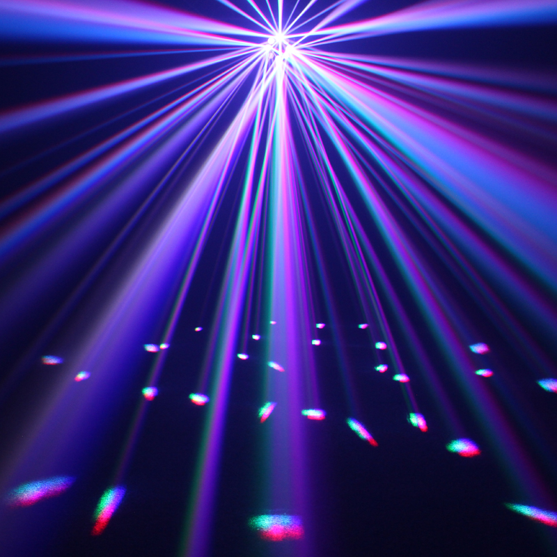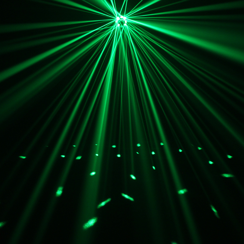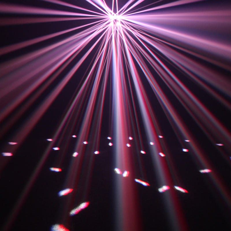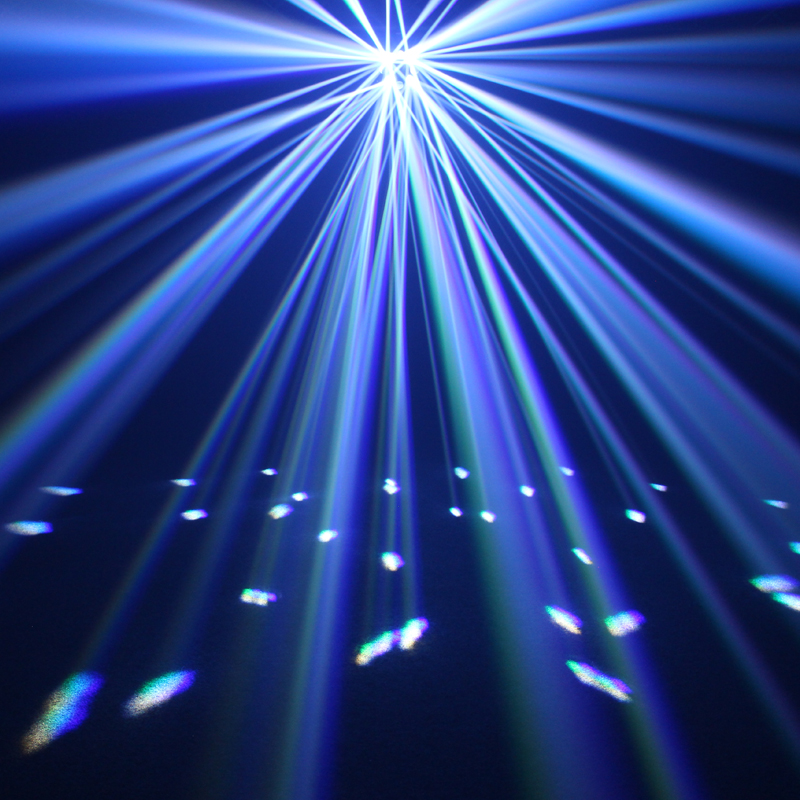 - 1 x 60W Osram Ostar™ quad-colour LED (RGBW)- DMX channels: 1/4 or 7 selectable- Sound active and master/slave modes plus built-in programs
