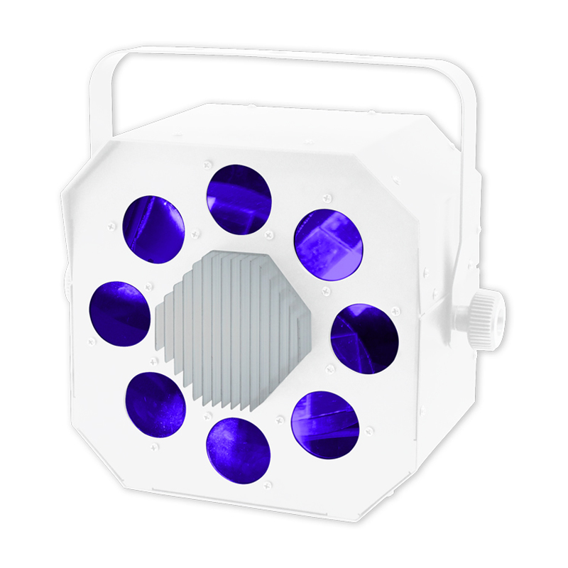 This high output moonflower is powered by a 60W Osram Ostar™ quad-colour RGBW LED. The high-tech Shard produces an intense array of colours combined with pin sharp beams. Several built in shows allow the user to select fast energetic movements and colour changes or a slow constant rotation to emulate a mirror ball effect. The unit features sound active, master/slave and DMX modes along with built-in programs selectable via the 4 button display panel on the rear of the unit. Additionally the unit can be controlled using a CA 8 controller (sold separately).