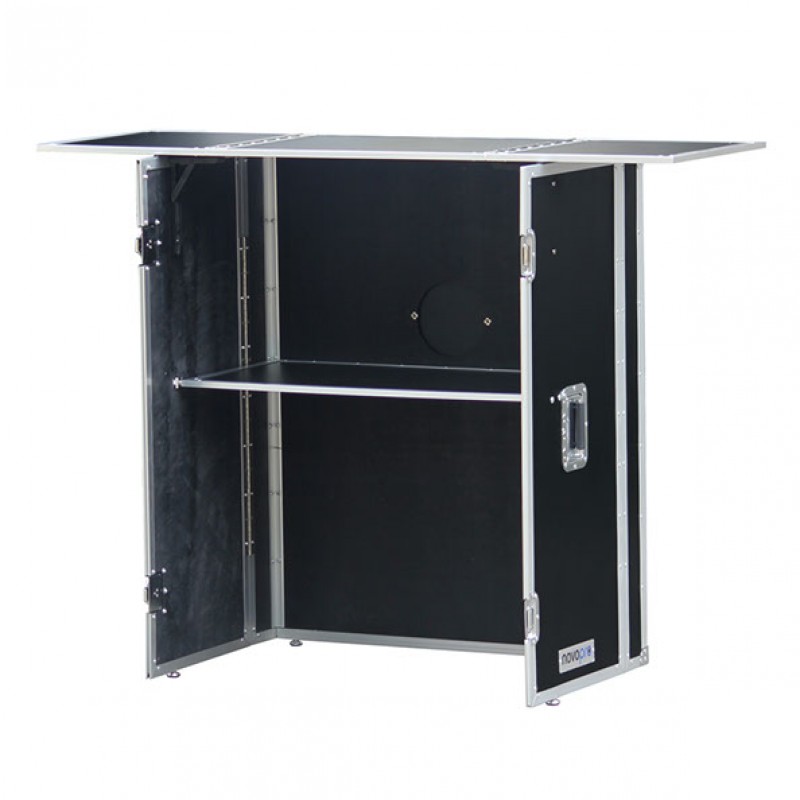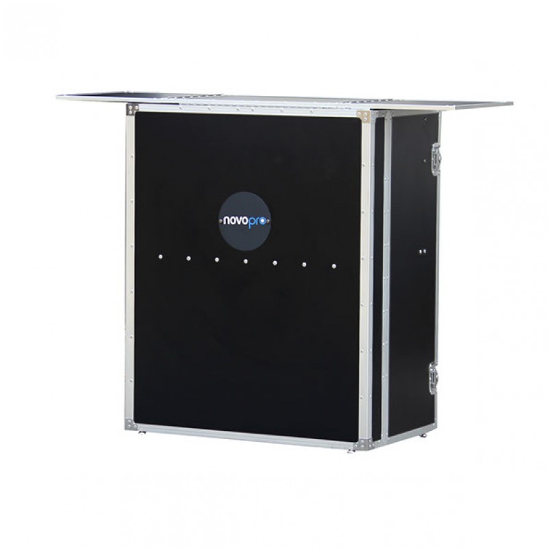 The inbuilt shelf can be used for storing equipment or cases but also has another design purpose; by placing a smoke/haze machine or lighting effect on the shelf and removing/rotating the round centre panel, you can get some great effects coming from 'inside' the Novopro FPB1 booth.