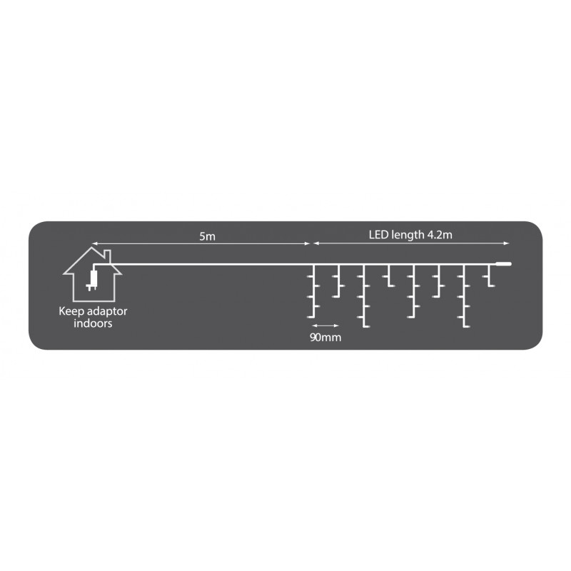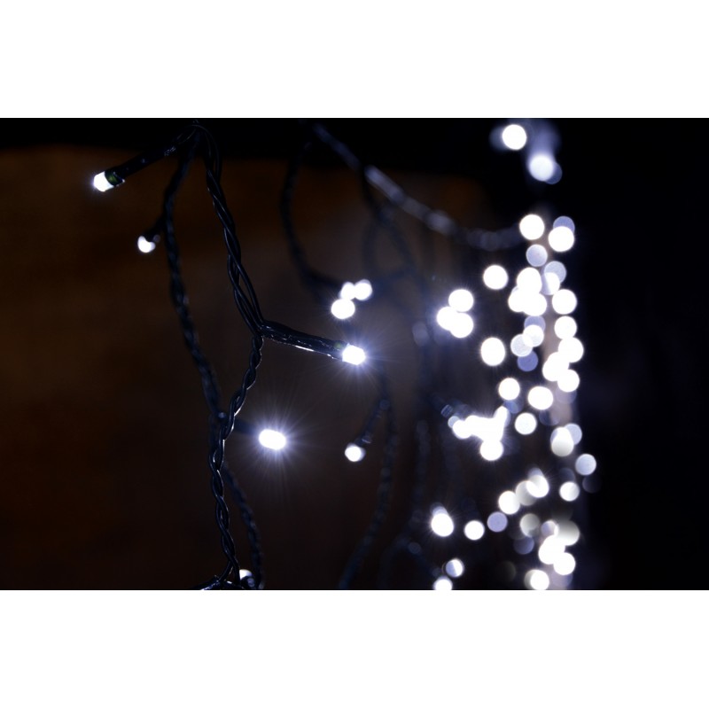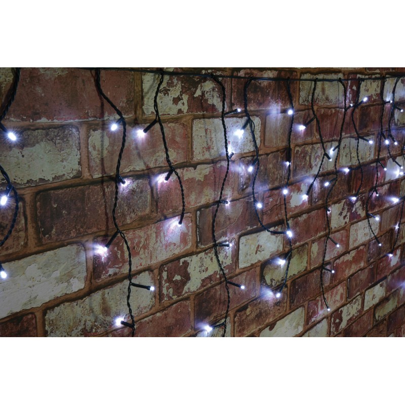 Versatile, icicle-inspired LED string lights for the festive season, special events and atmospheric evenings all year round. With 8 selectable sequences and an automatic timer function, these high-quality lights can be tailored to numerous decorative requirements. From the point of switching on, the lights maintain a 24-hour cycle of 8 hours on then 16 hours off, with static or sequenced programmes, selectable via the inline controller. The long life, energy efficient LEDs are fitted with concave heads for consistent and uniform brightness at all angles. Ideal for indoor and outdoor use.