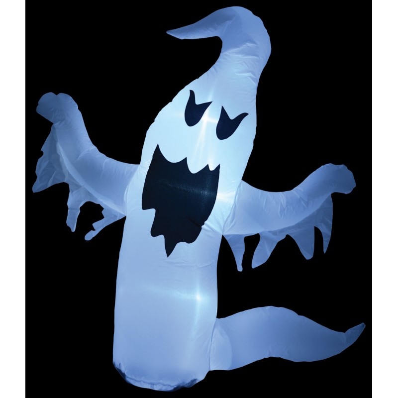 A range of large inflatable figures for the Halloween season. Each model is manufactured from tough nylon material and is self inflating with an internal fan powered from a 12V mains adaptor. Internal LEDs add illumination for a soft glow effect. The base of each figure is weighted to keep it secure and upright and ground spikes are included if additional fixing is required. Packed away, these figures are compact and easy to store, yet when inflated, they create an impressive display for Halloween parties and home decoration.Self-inflating with internal fan