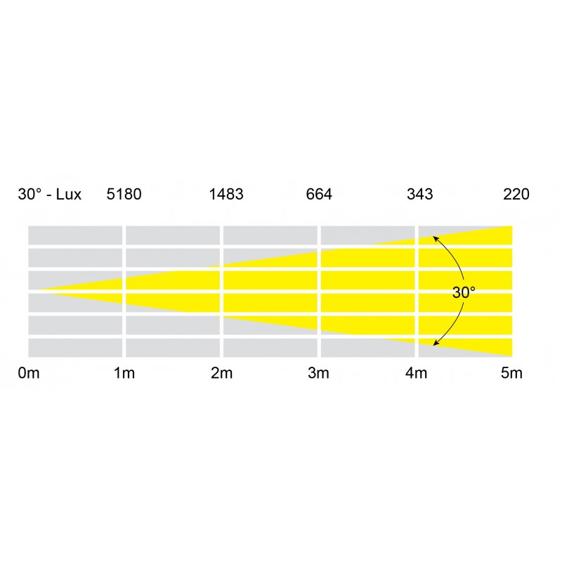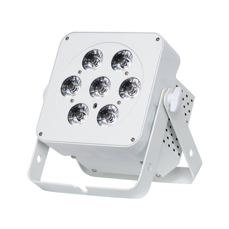 - 7 x 6W six-colour LEDs (RGBWAUV)- Beam angle: 30° (field angle: 40°)- 1,483 Lux @ 2m