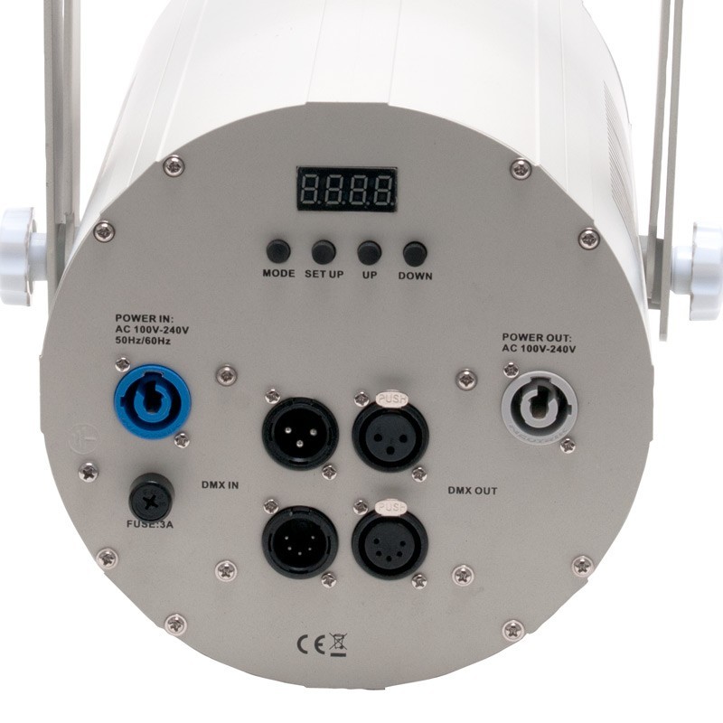 The COB Cannon Wash Pearl comes in an off-white casing and has massive 80-degree beam angle. Easily replaceable 40-degree and 50-degree lens are included so that the beam angle may be changed.