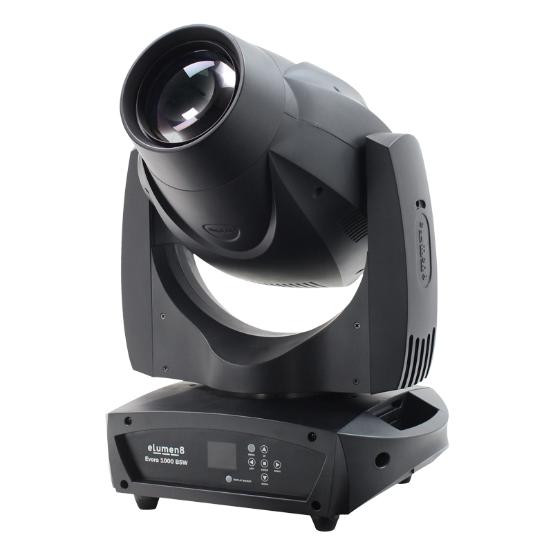 The Evora 1000 BSW is a 3-in-1 hybrid moving head with super smooth 3 phase motors. Boasting an immensely bright 180W LED, its output is ample for most large venues and events. With the ability to switch between a beam, spot and wash the Evora 1000 BSW offers a huge potential of creativity for projecting patterns onto walls or generating stunning mid-air effects. Used as a beam effect (4.5°), the unit emits sharp beams of light whilst as a spot (20°) the fixture is capable of stunning projections. When operated in the wash mode (45°) the unit produces soft-edged washes.