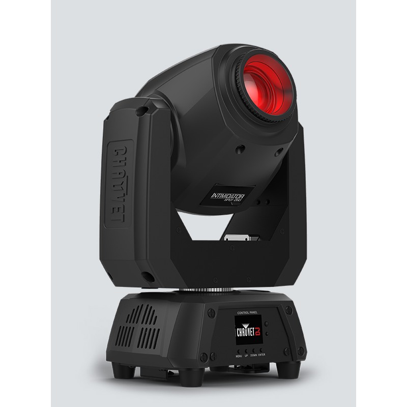 Give your mobile performances some lighting punch with the feature-packed Intimidator Spot 260. It features a 75W LED and motorized focus that lets you project crisp gobos from nearly any distance. Throw light farther by decreasing the beam angle 5° using the manual zoom. Keep the party energized using Totem mode that keeps beams on the dance floor and a 3-facet prism splits the beam and covers a larger area to thrill event guests. Intimidator Spot 260 lets you set, save, and recall 1 scene manually, directly from the full-color LCD display. Link up to 4 fixtures to create eye-catching, synchronized shows in Automated or Sound mode. You can also use convenient, wireless non-DMX control using the optional IRC-6 remote. Intimidator Spot 260 has powerCON®-compatible power input/output connections for power linking.