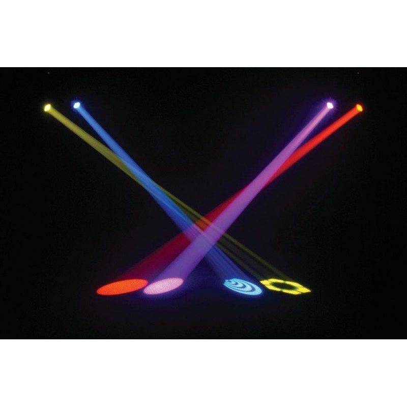 Intimidator™ Spot Duo features two fully and independently controllable moving heads mounted on an easy-to-rig bar. Slide it onto a tripod, clamp it to truss or set it on the floor. This high performance duo is linkable with one other unit to create eye-catching synchronized shows. Independent color and gobo wheels create numerous projections and mid-air effects, while DMX control allows for independent control of each head. Fits best in the CHS-DUO gear bag.