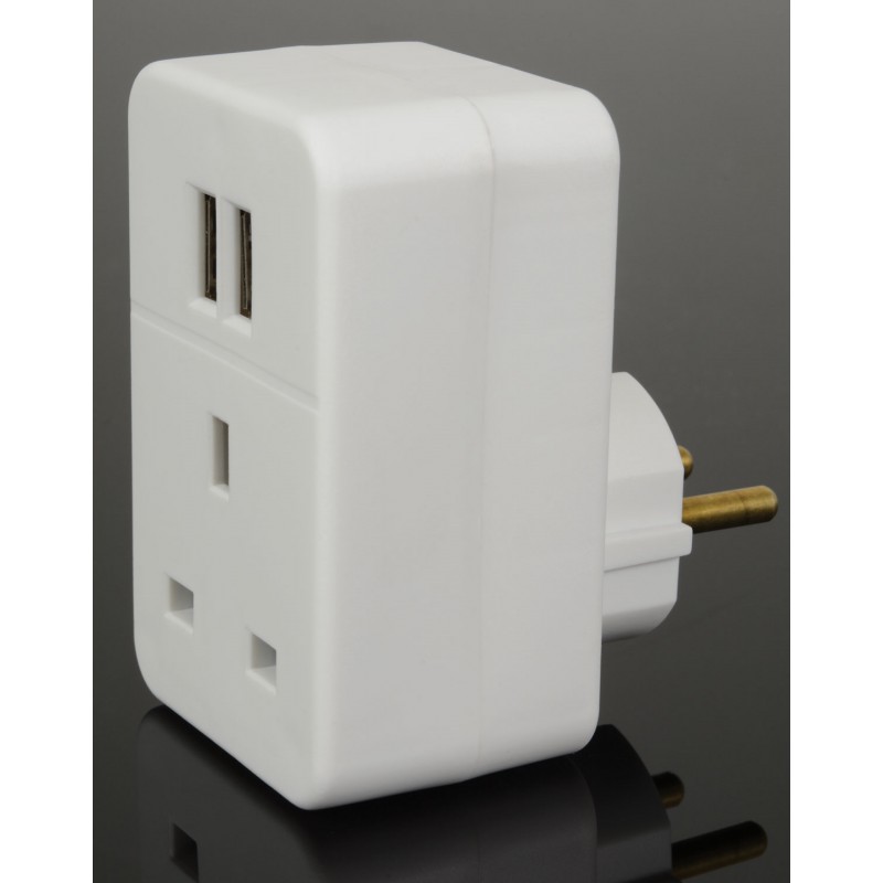 Adds handy USB ports to a standard UK to Europe adaptor