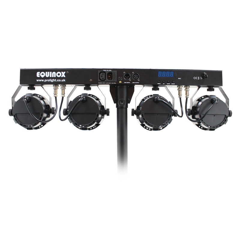 - 4 pars each containing 1 x 20W tri-colour LEDs (RGB)- Beam angle: 25°