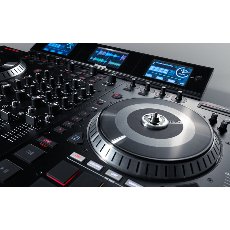 Our flagship NS7III controller is a premier four-deck controller for Serato DJ. Featuring three high-resolution color screens with a stackable waveform display and an interactive control surface, the NS7III forges a kinetic—no, make that radioactive— connection between the audience and your music.