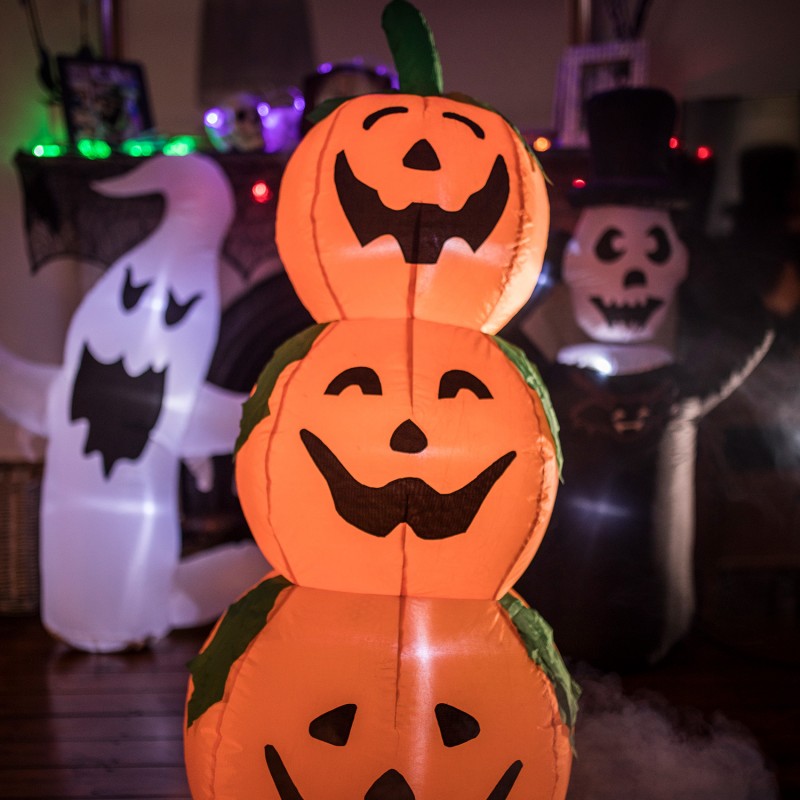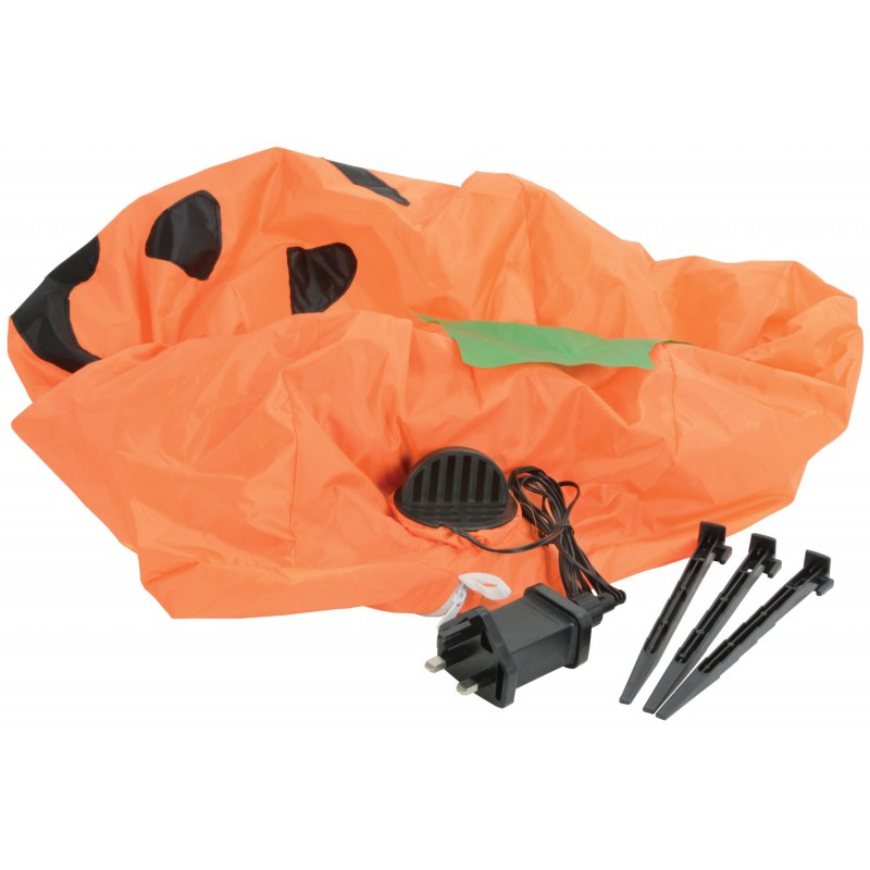 A range of large inflatable figures for the Halloween season. Each model is manufactured from tough nylon material and is self inflating with an internal fan powered from a 12V mains adaptor. Internal LEDs add illumination for a soft glow effect. The base of each figure is weighted to keep it secure and upright and ground spikes are included if additional fixing is required. Packed away, these figures are compact and easy to store, yet when inflated, they create an impressive display for Halloween parties and home decoration.
