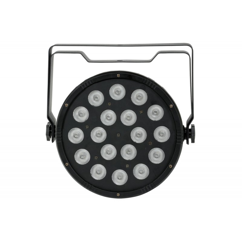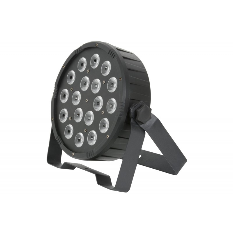A lightweight and compact LED PAR Can fitted with 18 3-in-1 RGB LEDs. This unit can be controlled by auto, sound-to-light, master/slave programs or via DMX. A great value solution for background wash illumination.