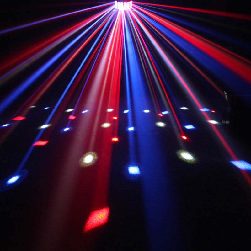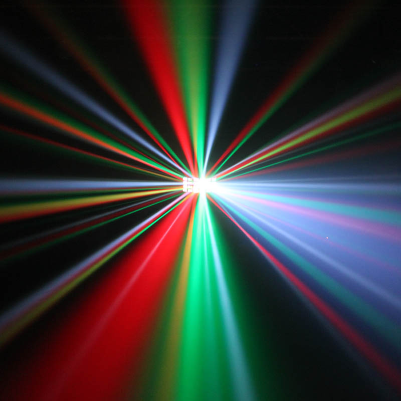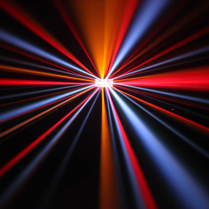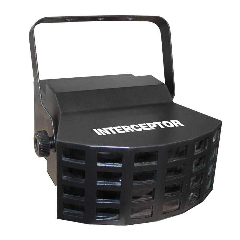 The Interceptor projects multi-coloured, widely dispersed beams of light that rotate and twist at varying speeds via its 24 lenses. With stunning built-in patterns, the Interceptor works via sound activation or DMX.