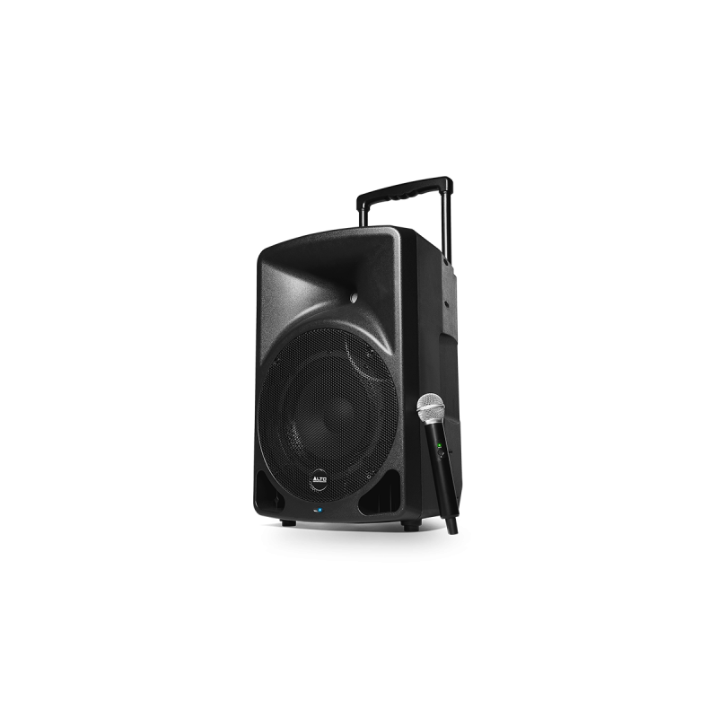 TRANSPORT 12 accomplishes this by operating for up to 8 hours off its built-in rechargeable lithium ion battery, which provides an AC cord-free power supply for its internal 400-watt digital Class D amplifier. The amplifier drives a high-output 12-inch 2-way speaker system in a compact, lightweight enclosure. TRANSPORT 12 can also be plugged into an AC outlet. This means it goes wherever there’s a need for clear, punchy high-fidelity sound. Whether AC power is available or not, it’s no problem for TRANSPORT 12.