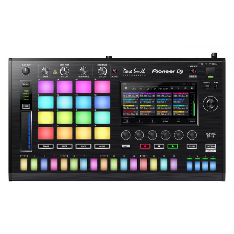 Take your creativity to another level in the booth, the studio and on stage with the TORAIZ SP-16 sampler and step sequencer. The tactile sampler features an intuitive touch screen and layout, 16 powerful sampler engines, analogue filters based on Dave Smith Instruments’ Prophet-6 synthesiser and quantize via Pro DJ Link. And you can use it as a stand-alone unit – no need to take a laptop into the booth.We’ve poured more than 20 years of electronic music industry experience into our first sampler to create a versatile sound machine. Load samples via USB or from the internal memory; then use the 16-step sequencer to create patterns, or playback loops or trigger one-shots with the multicoloured Performance Pads. And if you’re connected to CDJs via Pro DJ Link, everything is synced to the beat of the master deck, so you can get creative with confidence.We’ve partnered with the legendary synth creator Dave Smith to add his Prophet-6 analogue filters to the sampler, so you can give your creations a rich, analogue warmth and presence. Plus a touch strip gives you instinctive control of various parameters including pitch bending. The real-time processing engine means you can reliably manipulate the sound using time stretch, pitch bend and amp envelope.