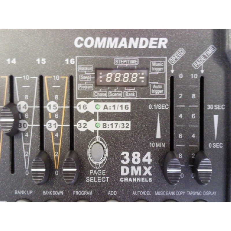 - Controls 12 fixtures of up to 32 channels each (Total 384 channels)