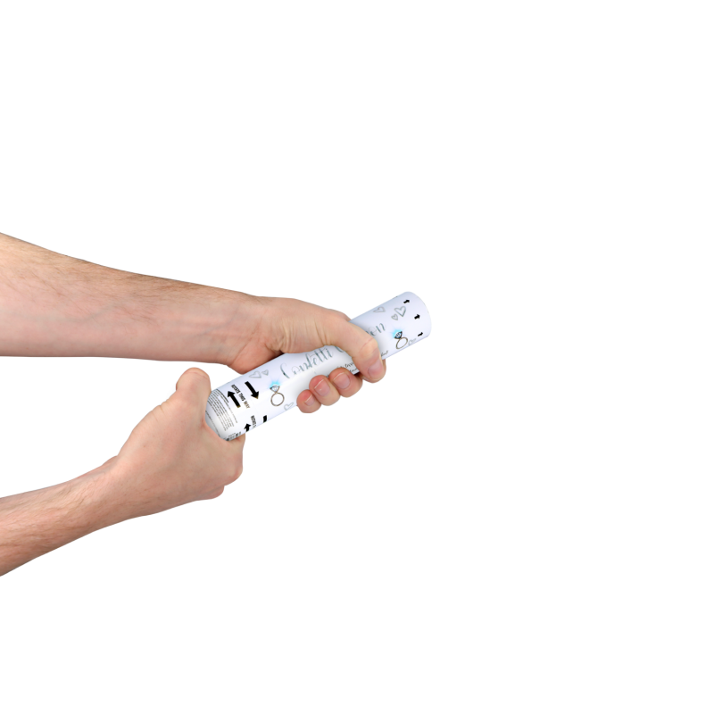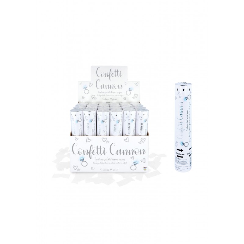 These white paper confetti cannons are perfect for wedding parties and other celebrations! Confetti shooters contain white tissue paper that is biodegradable, flame resistant, and colourfast. Size: 20cm.